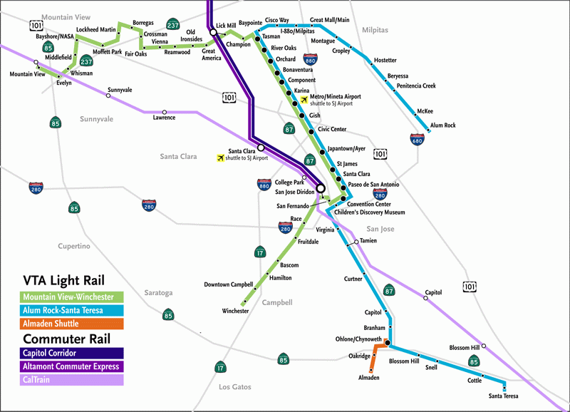Полностью система называется Santa Clara Valley Transportation Authority light rail или сокращенно VTA light rail и обслуживает Сан-Хосе и его пригороды в Силиконовой долине.