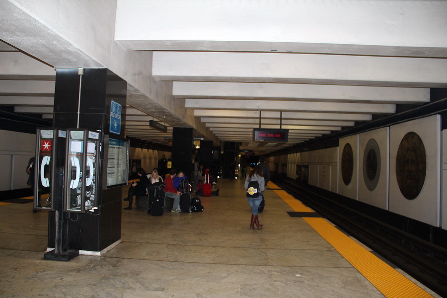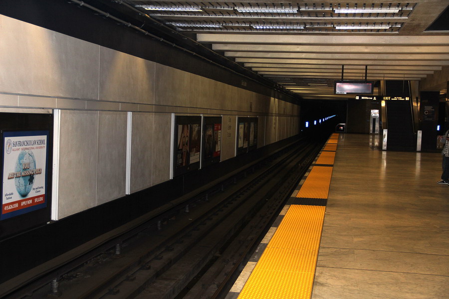 Станция Civic Center. Поезда следуют по расписанию, но оно не всегда соблюдается. Наш поезд красной линии опоздал минут на 7-8, а предыдущие поезда зеленой и синей линий имели конечную раньше, на станции Daly City. Для разнообразия сели на первый же поезд и доехали до Daly.