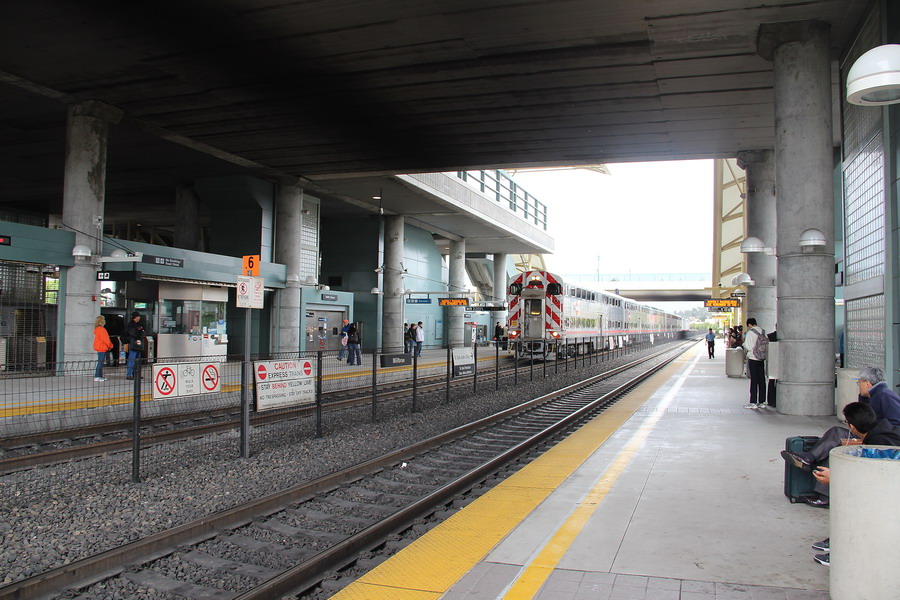 Станция Millbrae. Так как выход со станции через турникеты и никого рядом из персонала не было, а у нас бумажный билет, то вышли через калитку аварийного выхода, но никто не прибежал, хотя камеры висят. Вроде этот билет нужно кому то сдать на станции назначения, но где было искать "кого-то" на платформе было не ясно. Здесь мы делали пересадку на поезд системы CalTrain.