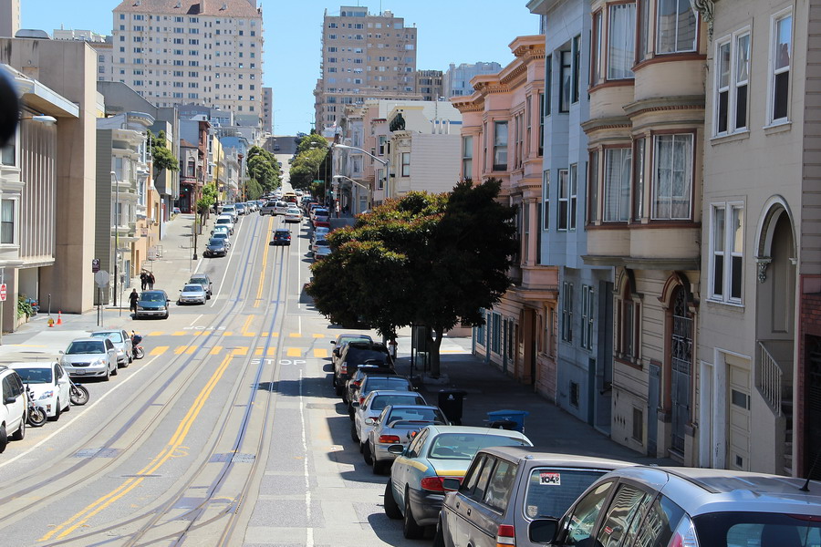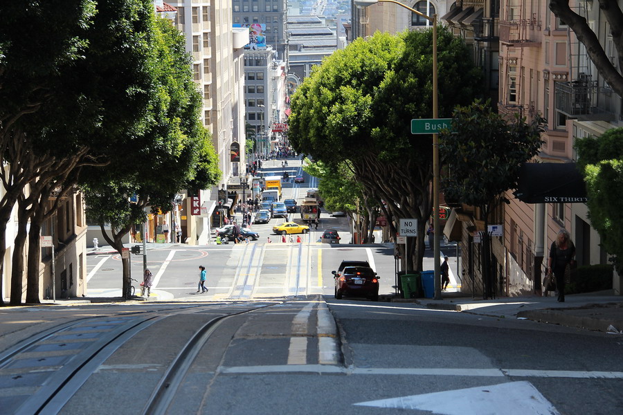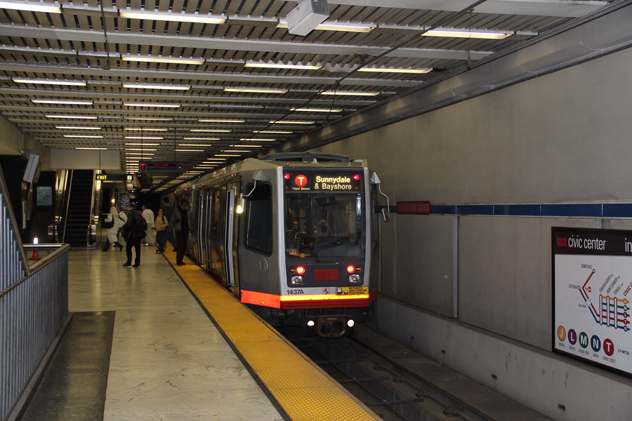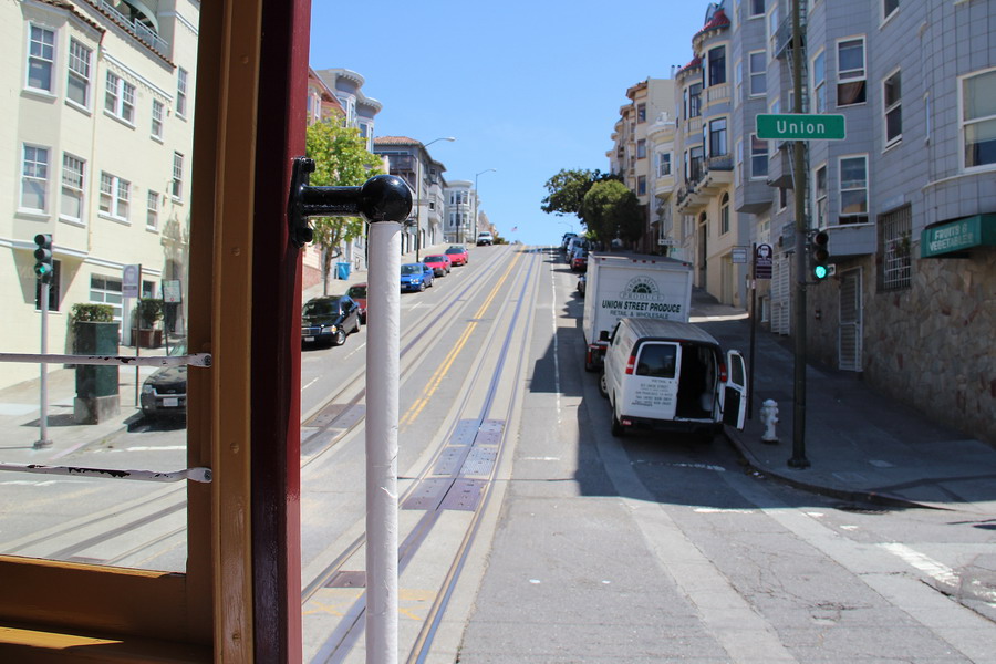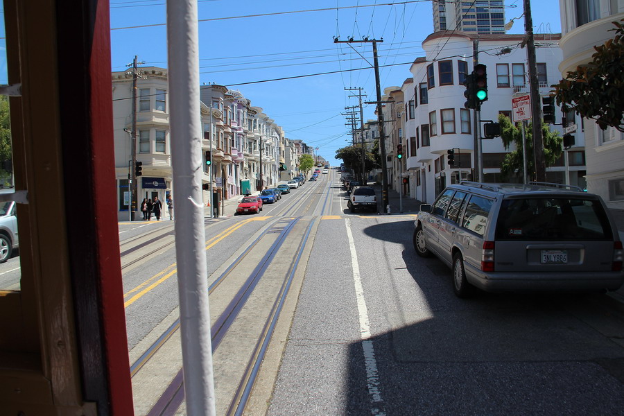 Началась поездка от центральной части Сан-Франциско, улицы Маркет, станции Civic Center/UN Plasa. Улица является одной из главных транспортных аретерий города, под улицей, вдоль всего ее протяжения проложен двухэтажный железнодорожный тоннель для системы BART и скоростного трамвая MUNI, а на поверхности проходит линия трамвая F, троллейбусные и автобусные маршруты.