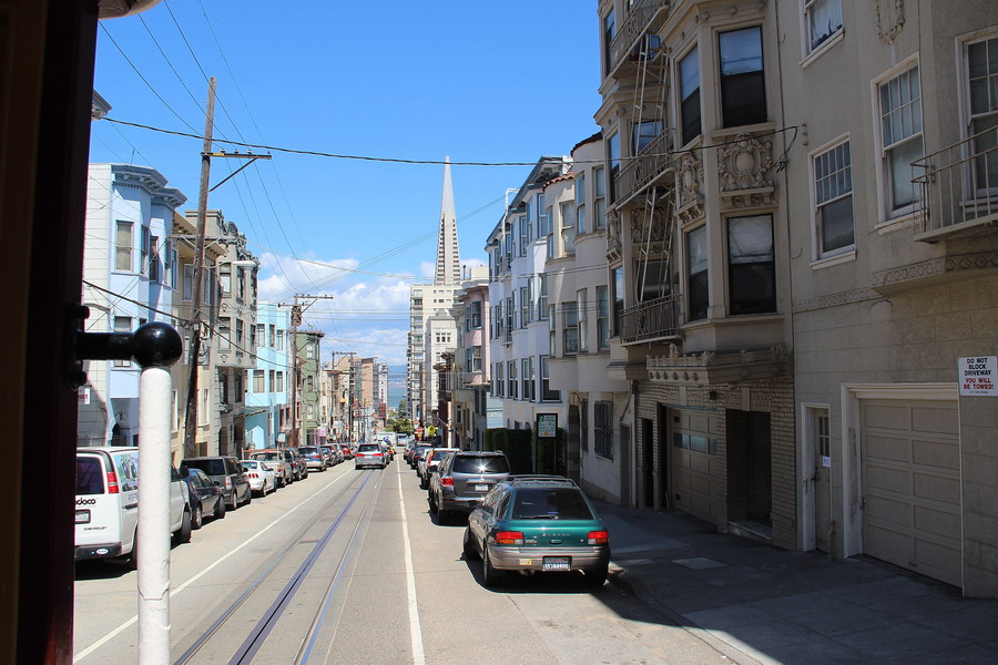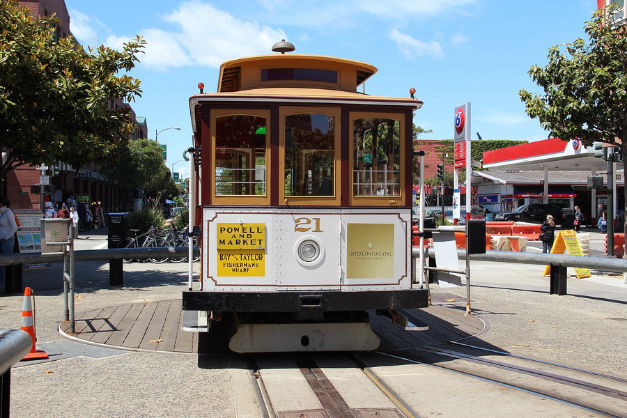 Cable Car достопримечательность Сан-Франциско и один из его символов и cистема трамвая включена в национальный регистр памятников истории США. В настоящее время система состоит из трех линий, две линии имеют общий участок и конечную в центре города и третья линия пересекает первые две. Отправление трамваев с конечных по наполнению, с интервалом примерно в 10 минут, на некоторых конечных в очереди на посадку в сезон можно простоять больше часа. Система работает практически как туристический атракцион, здесь своя система оплаты, 6 долларов за поездку. В российской Вики весьма полная статья по Cable Car