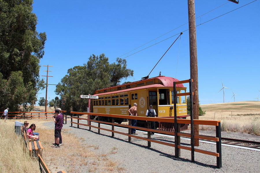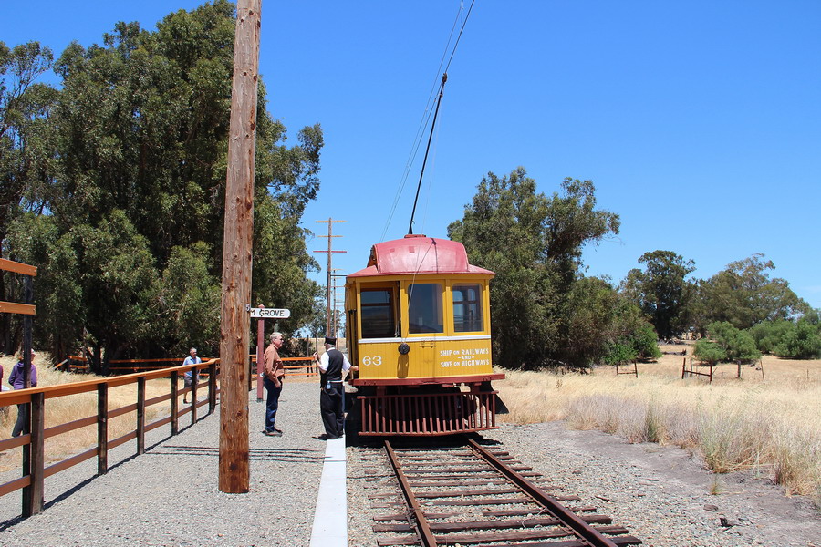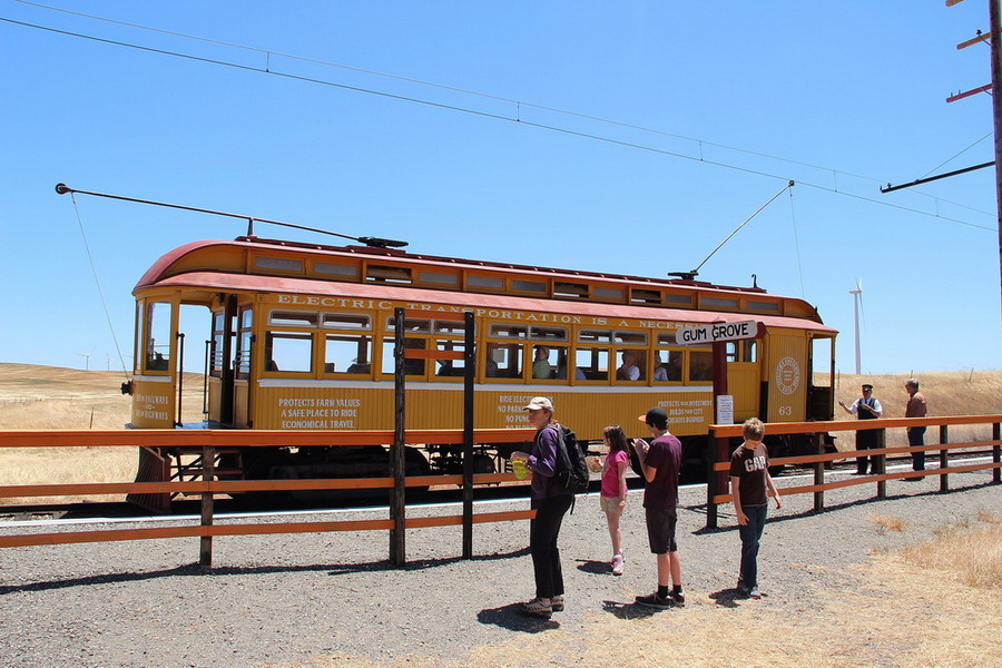 Примерно на полпути и чуть в сторону от основной автодороги в городке (а реально в чистом поле) Suisun City расположен Weatern Railway Museum, музей рельсового электротранспорта. Теоретически до него можно добраться общественным транспортом от станции Фэрфилд (Амтрак "Capitol Corridor") - местным автобусом, 4 рейса в день, причем по поводу двух из четырех рейсов нужно звонить в компанию и подтвердить, что едешь. Так как у нас на этот день также было запланировано посеoение заповедника секвой Мьюир Парк и мост Золотые ворота со стороны форта, то взяли машину. На карте музей обозначен "А".