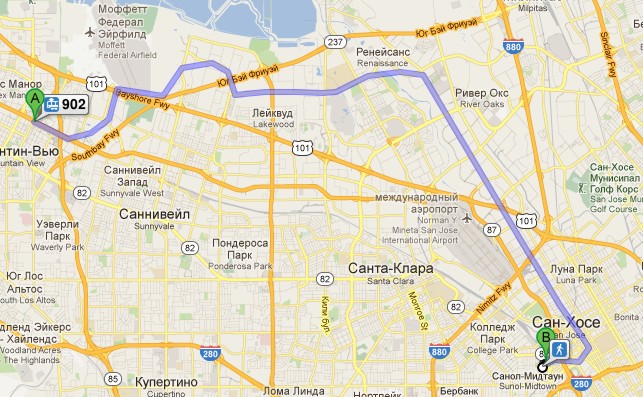 Мы проехади участок от станции Millbrae до станции Mountain View.