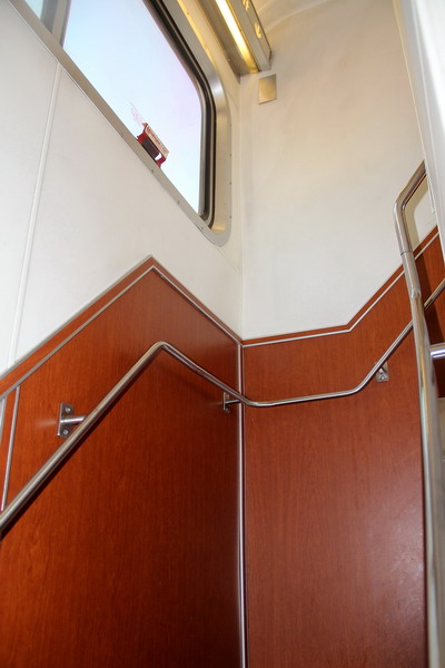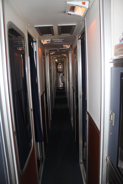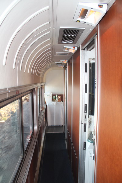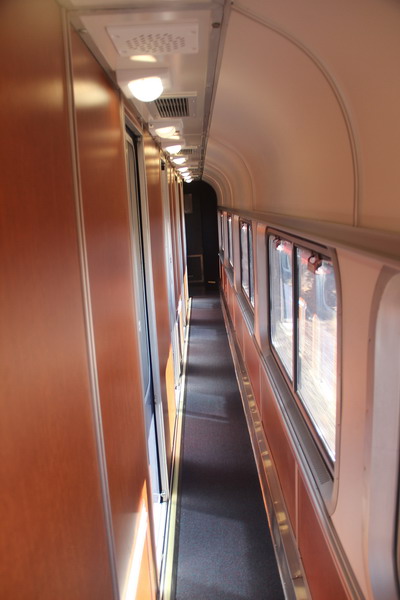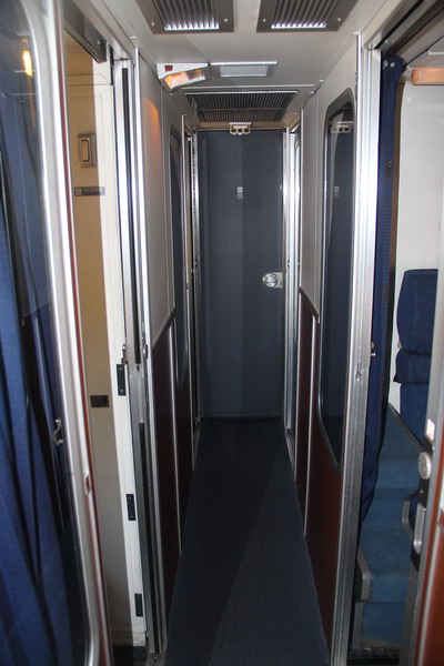 Коридор второго этажа вагона между маленькими купе типа Roomette (коридор идет по оси вагона). Для Roomette туалеты и душ общие на первом этаже вагона.