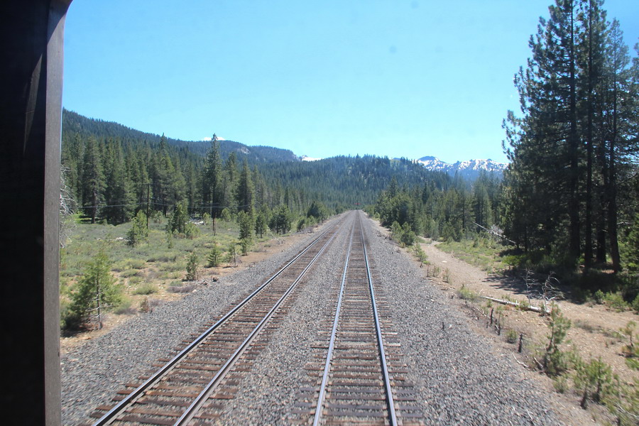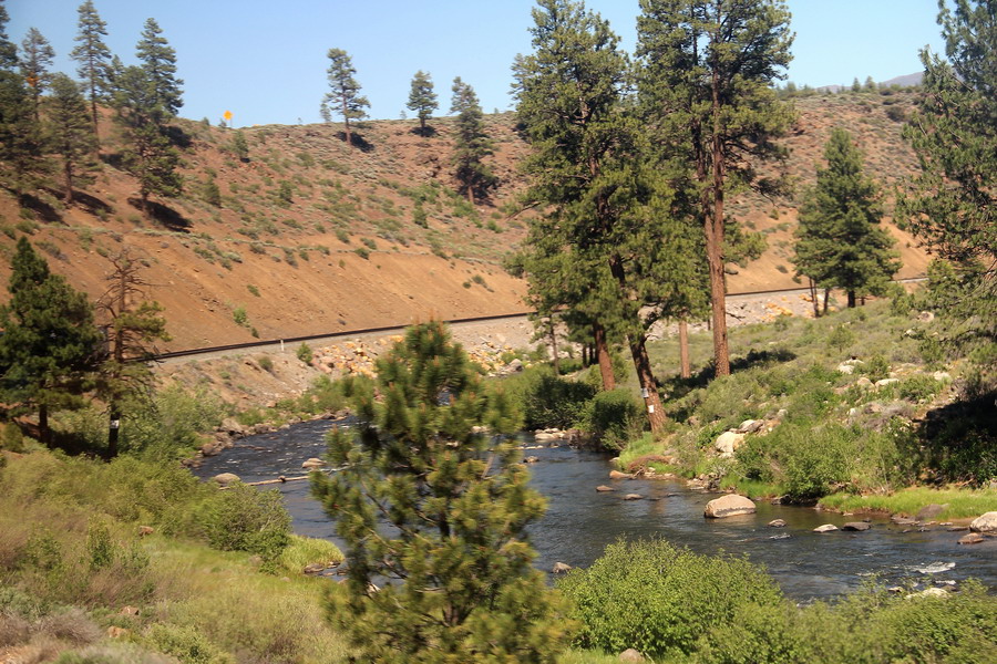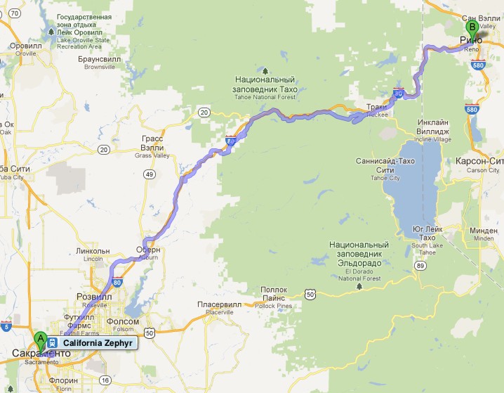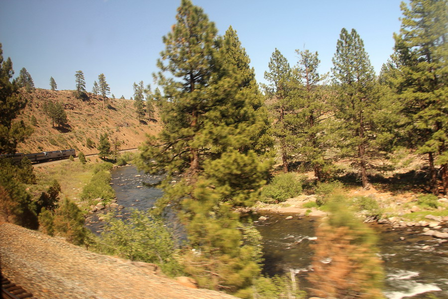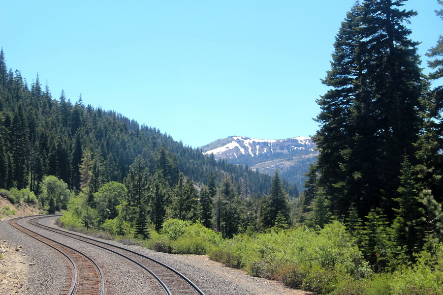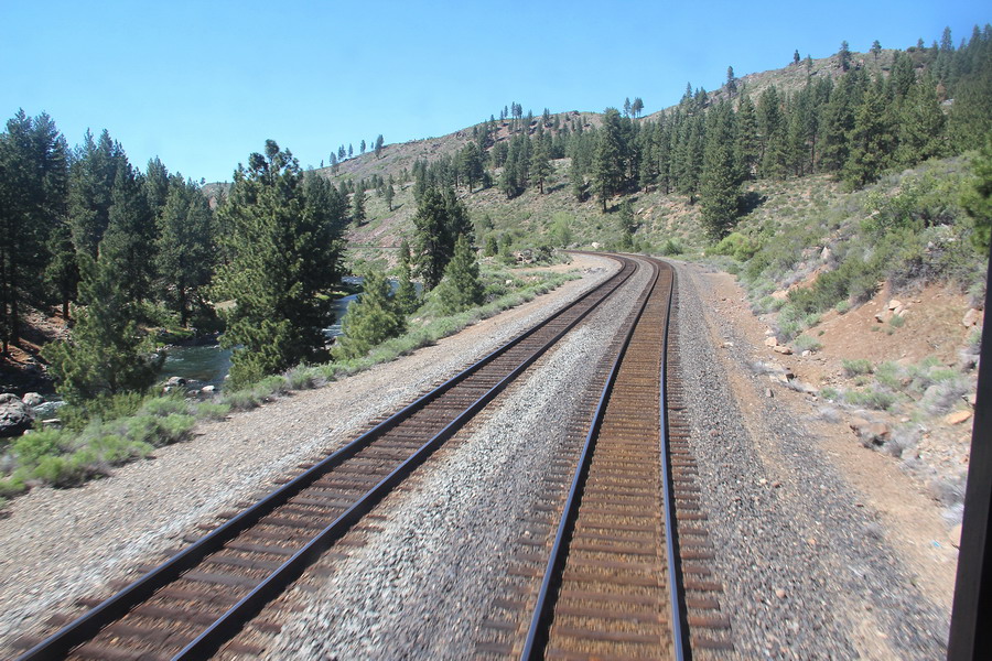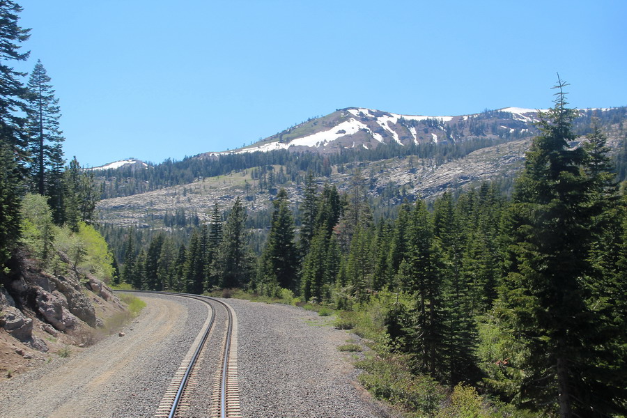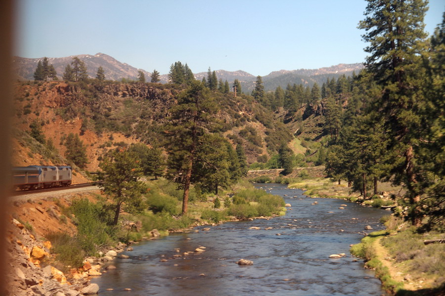 Маршрут поезда через Сьерра-Неваду от Сакраменто до Рино. Поездка для меня была несколько утомительной, так как приходилось постоянно разрываться между фотографированием изумительных по красоте пейзажей из торцевого окна последнего вагона (джентельменски делили время еще с одним любителем) и своего купе и окон коридора. То есть постоянная беготня.