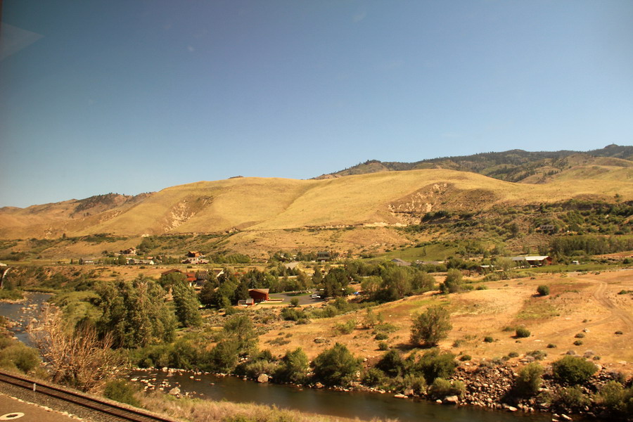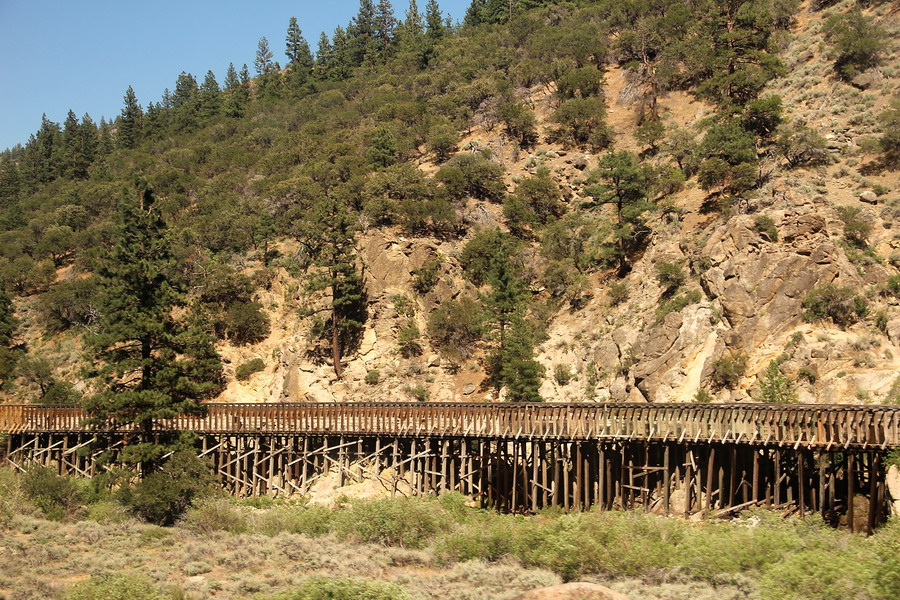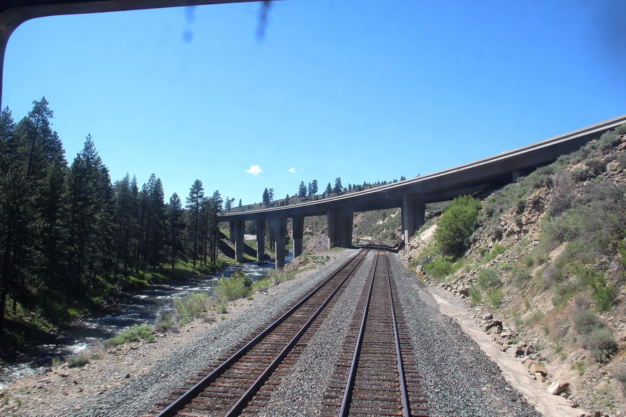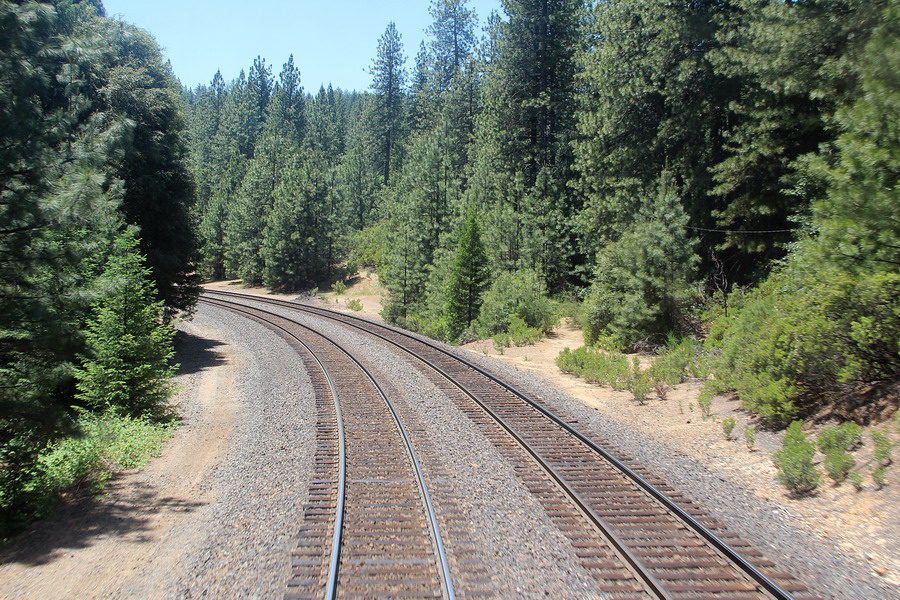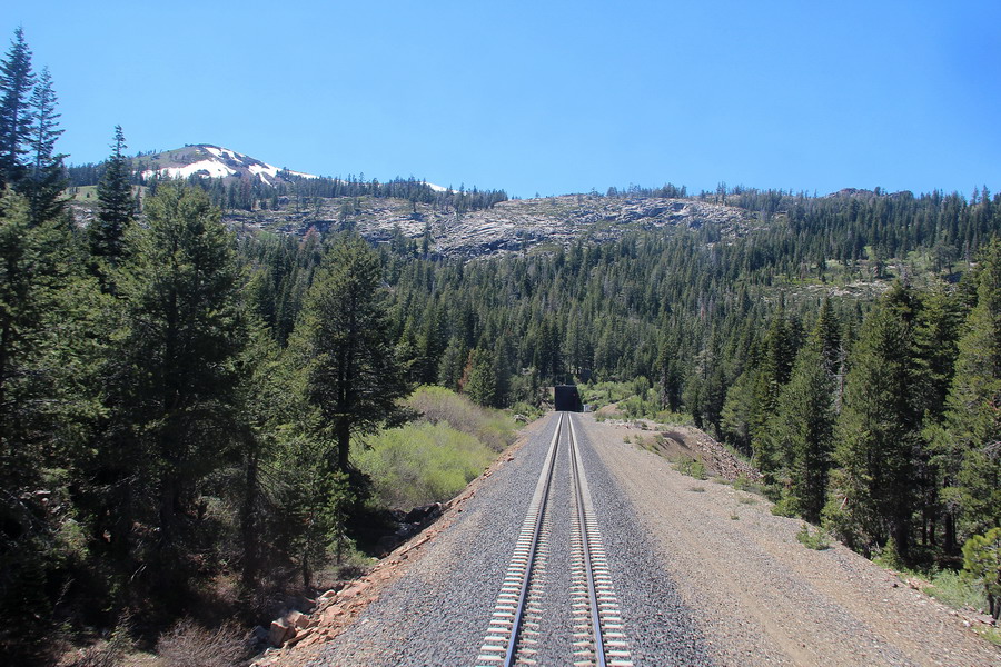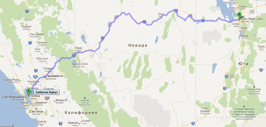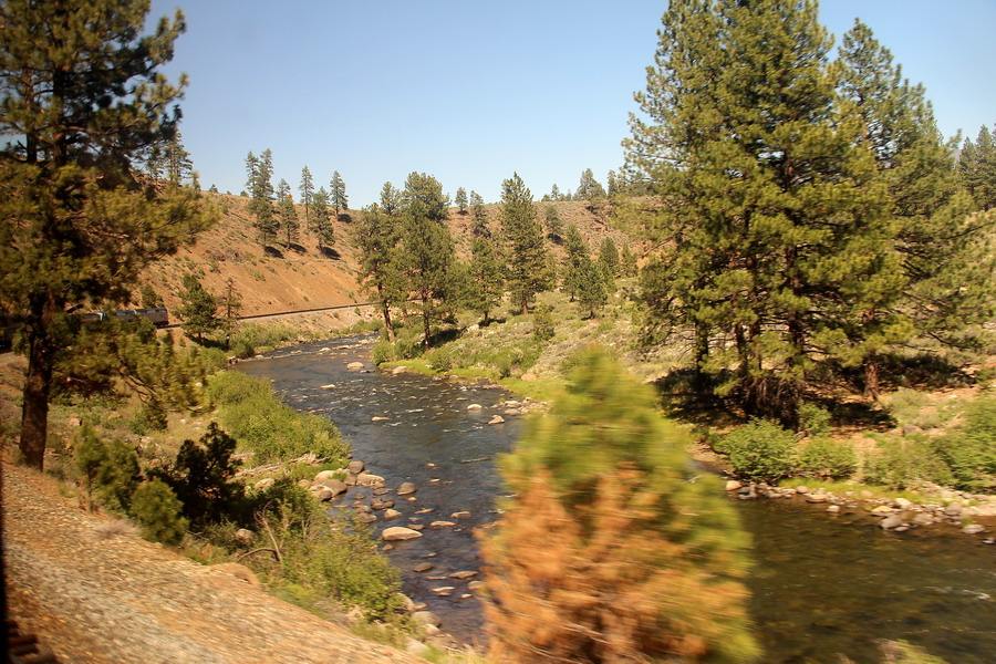 Маршрут поезда через Сьерра-Неваду от Сакраменто до Рино. Поездка для меня была несколько утомительной, так как приходилось постоянно разрываться между фотографированием изумительных по красоте пейзажей из торцевого окна последнего вагона (джентельменски делили время еще с одним любителем) и своего купе и окон коридора. То есть постоянная беготня.